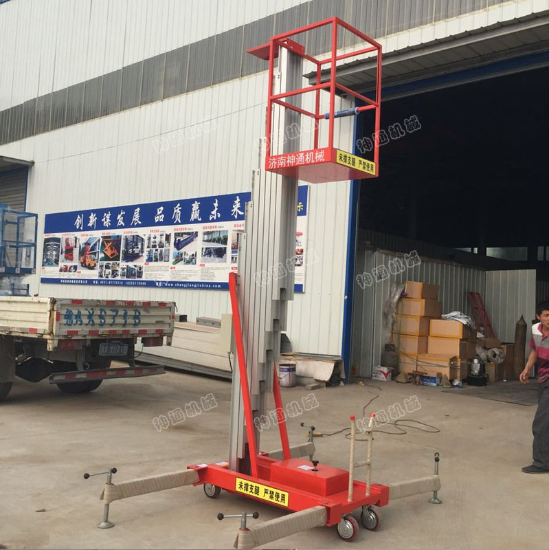 產(chǎn)品介紹:鋁合金升降平臺,采用高強度優(yōu)質(zhì)鋁合金材料,具有造型美觀、體積小、重量輕、運轉(zhuǎn)靈活,推行方便。單柱鋁合金升降機,升降平穩(wěn)、安全可靠等優(yōu)點,能穿越一般門廳,可隨意進出電梯,能在極小的空間內(nèi)發(fā)揮最高的舉升能力。使單人高空作業(yè)變得輕而易舉。且耗電少、無污染、工作時不傷地面,可用于貼墻作業(yè)及探出作業(yè)!鋁合液壓金升降平臺分為單柱、雙柱、三柱和四柱等。