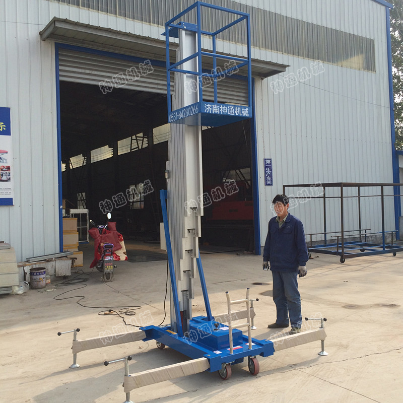 產(chǎn)品介紹:鋁合金式液壓升降平臺采用高強度優(yōu)質(zhì)鋁合金材料,具有造型美觀、體積小、重量輕、運轉(zhuǎn)靈活,推行方便。升降平穩(wěn)、安全可靠等優(yōu)點。雙柱鋁合金式升降機能穿越一般門廳,可隨意進出電梯,能在極小的空間內(nèi)發(fā)揮最高的舉升能力。使雙人高空作業(yè)變得輕而易舉。且耗電少、無污染、工作時不傷地面,可用于貼墻作業(yè)及探出作業(yè)。鋁合金升降平臺分為單柱、雙柱、三柱和四柱等。