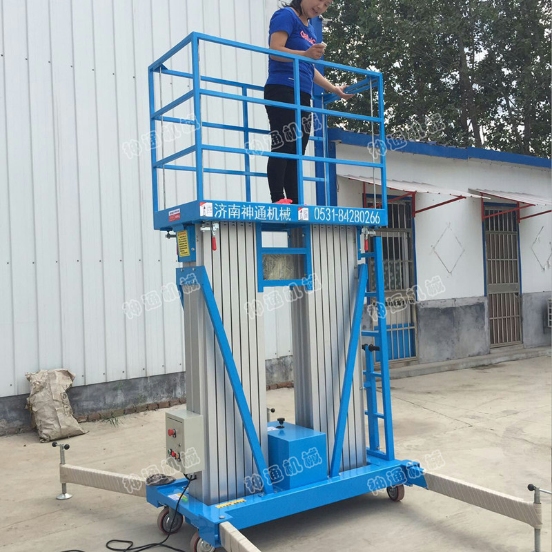 產(chǎn)品介紹:鋁合金電動升降機,采用高強度優(yōu)質(zhì)鋁合金材料,具有造型美觀、體積小、重量輕、運轉(zhuǎn)靈活,推行方便。升降平穩(wěn)、安全可靠等優(yōu)點。SJYL三柱鋁合金液壓升降平臺能穿越一般門廳,可隨意進出電梯,能在極小的空間內(nèi)發(fā)揮最高的舉升能力。使單人高空作業(yè)變得輕而易舉。且耗電少、無污染、工作時不傷地面,可用于貼墻作業(yè)及探出作業(yè)。鋁合金液壓升降平臺分為:單柱、雙柱、三柱和四柱等。