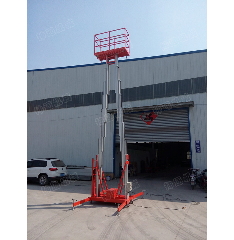 產(chǎn)品介紹:鋁合金式液壓升降平臺采用高強(qiáng)度優(yōu)質(zhì)鋁合金材料,具有造型美觀、體積小、重量輕、運轉(zhuǎn)靈活,推行方便。升降平穩(wěn)、安全可靠等優(yōu)點。雙柱鋁合金式升降機(jī)能穿越一般門廳,可隨意進(jìn)出電梯,能在極小的空間內(nèi)發(fā)揮最高的舉升能力。使雙人高空作業(yè)變得輕而易舉。且耗電少、無污染、工作時不傷地面,可用于貼墻作業(yè)及探出作業(yè)。鋁合金升降平臺分為單柱、雙柱、三柱和四柱等.