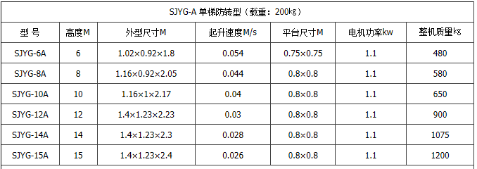 產(chǎn)品規(guī)格:單梯套缸式升降機系列產(chǎn)品升降高度從4米到30米不等,設備升降裝置采用高強度冷拔管多級套嵌結(jié)構(gòu),升降平穩(wěn), 安全可靠,設備體積小,工作高度高。